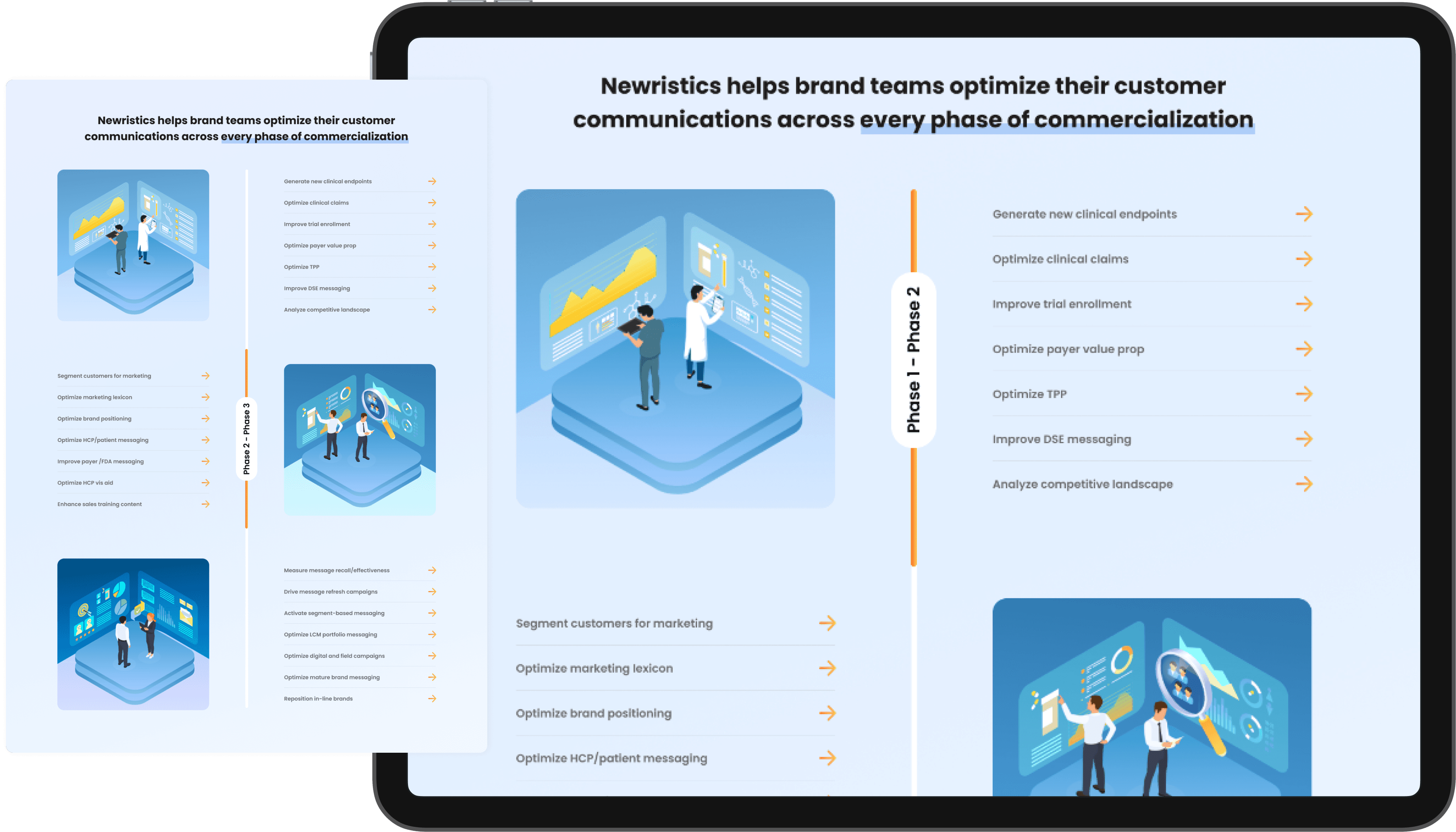 I performed secondary research on the drug commercialization process and aligned Newristics' services and product offerings accordingly. Together with the Newristics team, I developed a list of use cases tailored for pharma teams. These use cases were illustrated sequentially across the various phases of the drug commercialization journey.